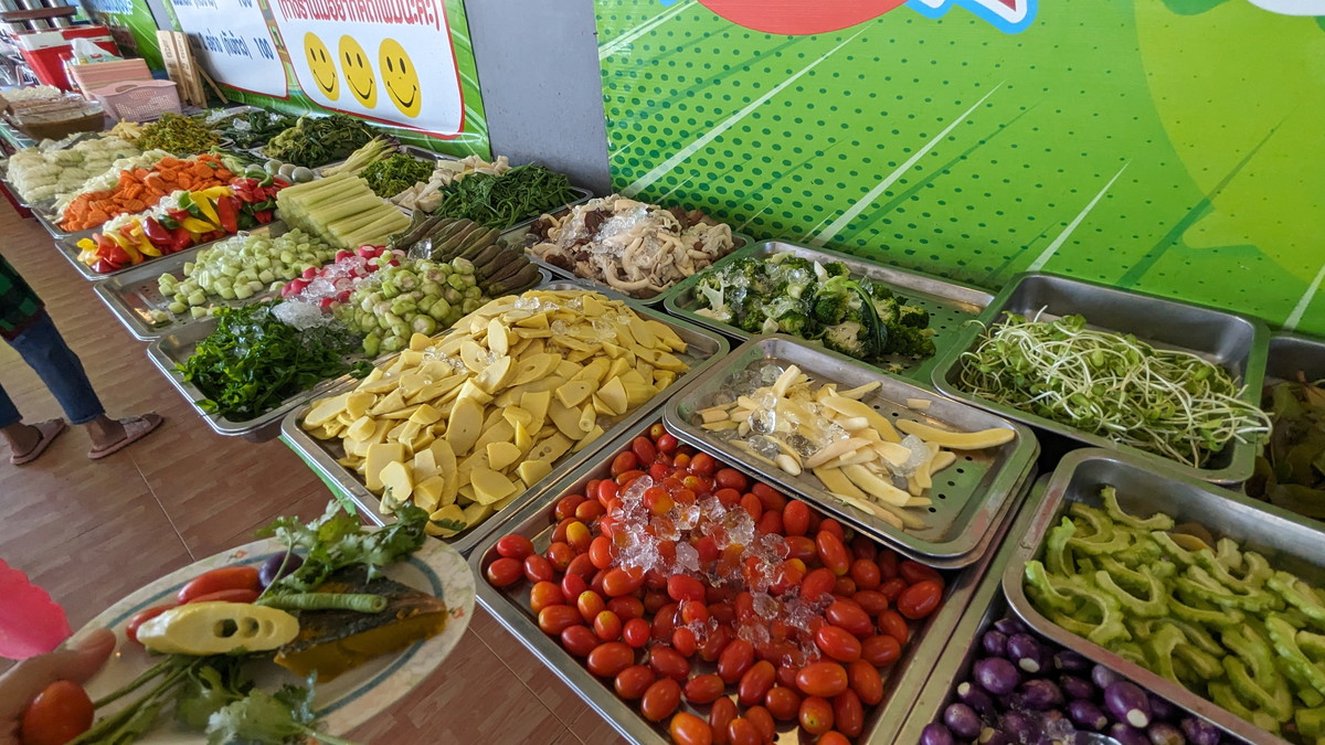 ちょっとハエがいたのが気になる。見たこともない野菜ばかり。